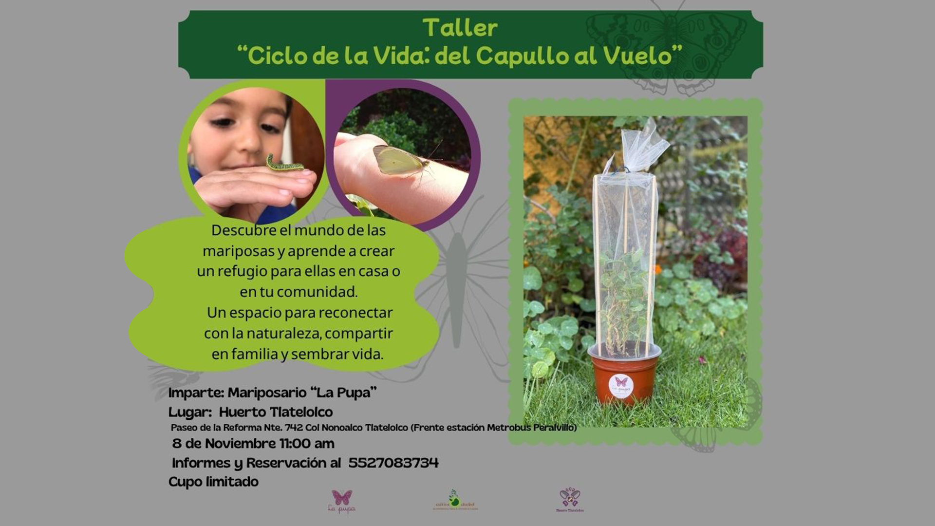 De la mano del Mariposario La Pupa, aprenderemos sobre su ciclo, su hábitat y cómo crear espacios que las reciban —refugios vivos donde florece la biodiversidad.