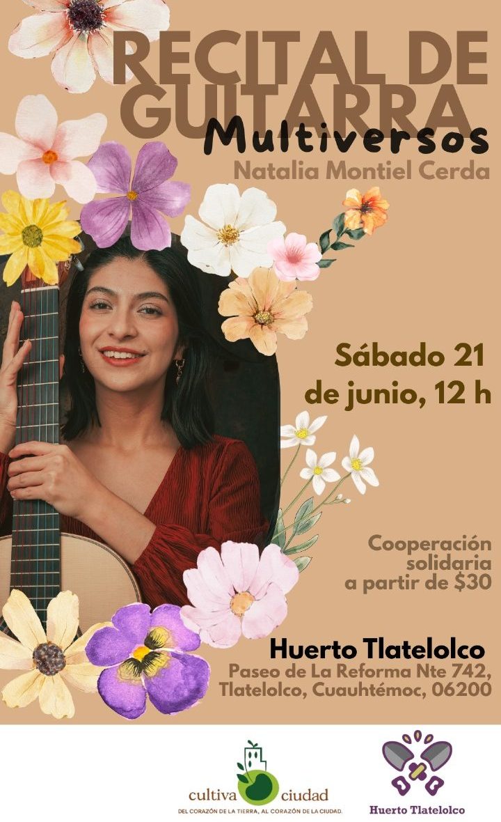 Natalia Montiel Cerda nació en la Ciudad de México en 1999. Es guitarrista clásica, así como intérprete de música mexicana y latinoamericana. Se ha desarrollado en el canto, la guitarra, la jarana jarocha, la vihuela y el cuatro venezolano, así como el zapateado. Ha tomado clases con grandes maestros comprometidos en transmitir estos conocimientos a nuevas generaciones.